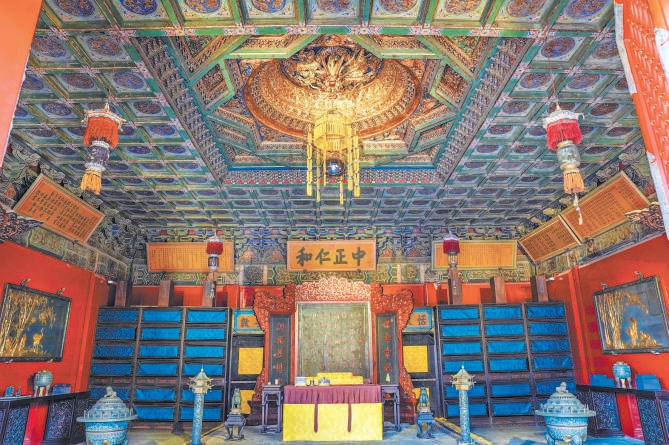 历时3661天,故宫博物院养心殿重张。殿内,雍正御笔“中正仁和”匾高悬。隔窗望,东暖阁屋顶垂落黄色幔帐;三希堂内,御用文房用具巧妙摆放,墙上挂瓶里的宝石花永不凋谢……一切,别来无恙。