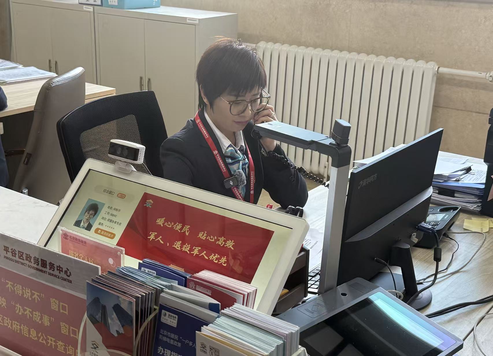 平谷区政务服务中心综合窗口工作人员何秋平。新京报记者 曹晶瑞 摄