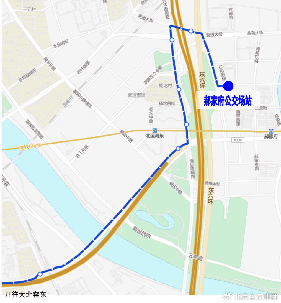 开往北京通州站方向:通州杨坨桥西、紫运南里一区、紫运中路南站、北京通州站;