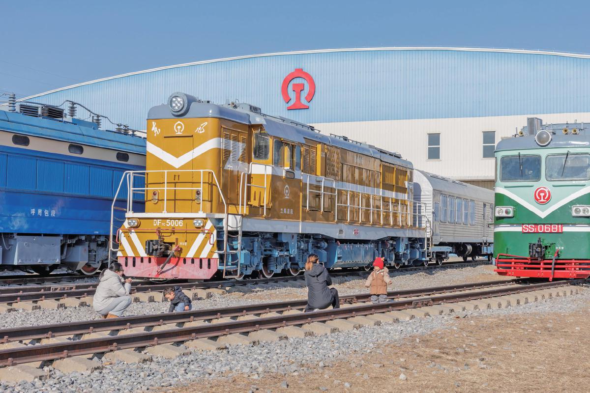 场景:家长带着小朋友与火车头合影留念。新京报记者王子诚 摄