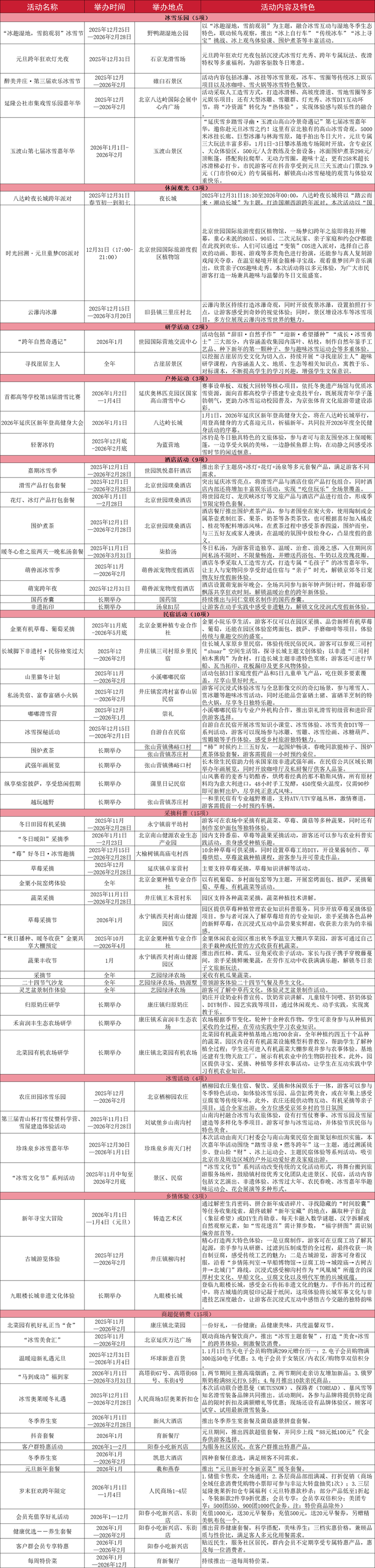 2026年延庆区元旦假日期间文旅活动