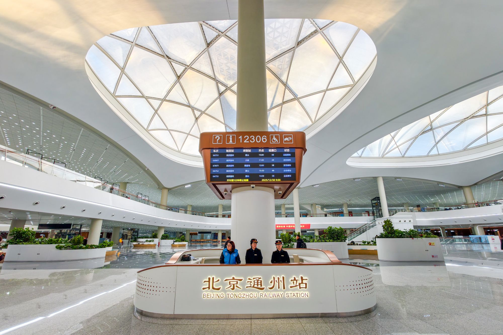 12月30日,坐落于北京城市副中心综合交通枢纽(简称副中心枢纽)内的北京通州站正式开通投运,北京“八站两场”综合交通枢纽格局成型。今天(30日)上午10时,首趟列车载着448名旅客从北京通州站发出,终点为唐山,全程1小时整。