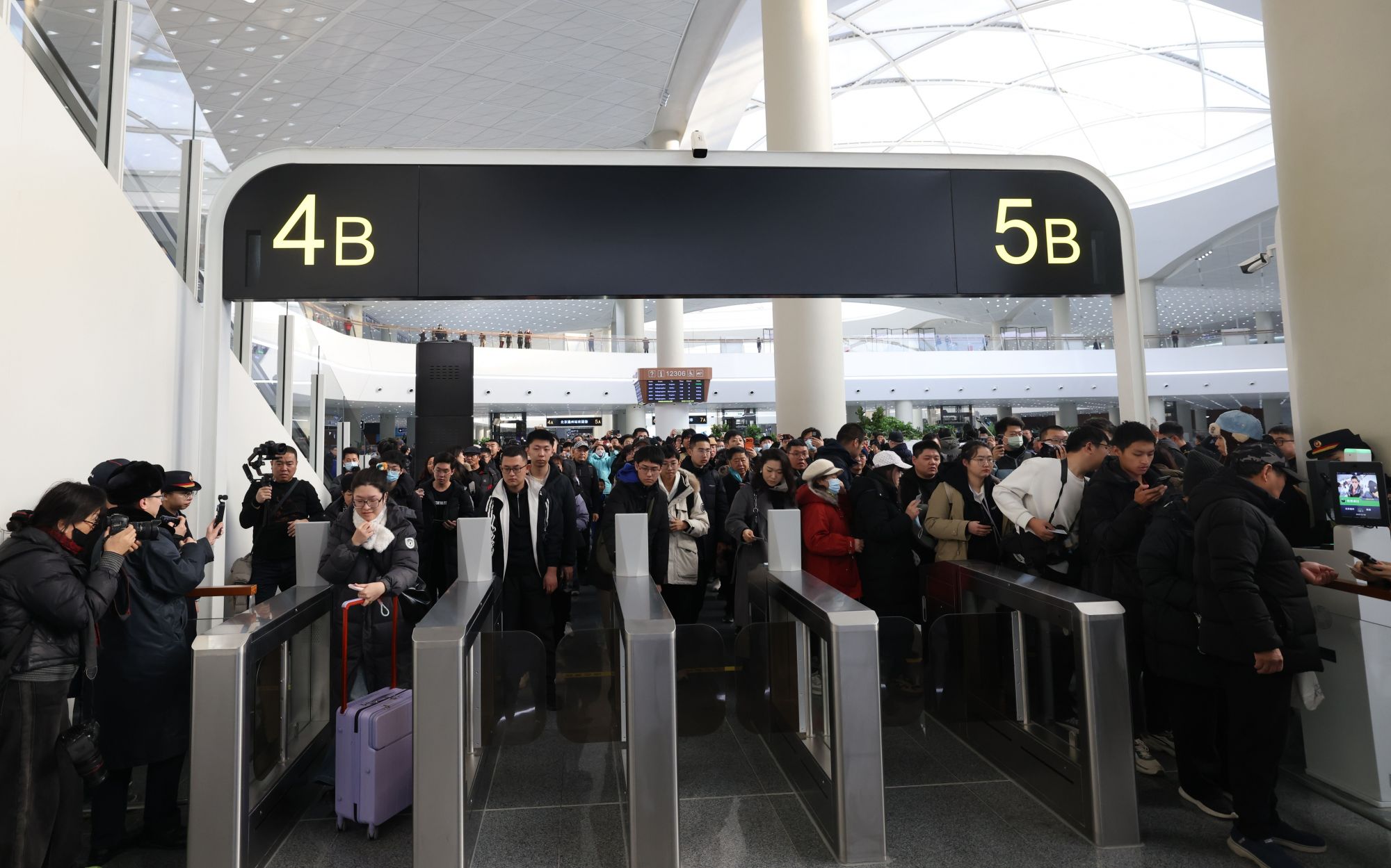 12月30日,北京通州站开通运营,旅客来此乘车体验。新京报记者 王贵彬 摄