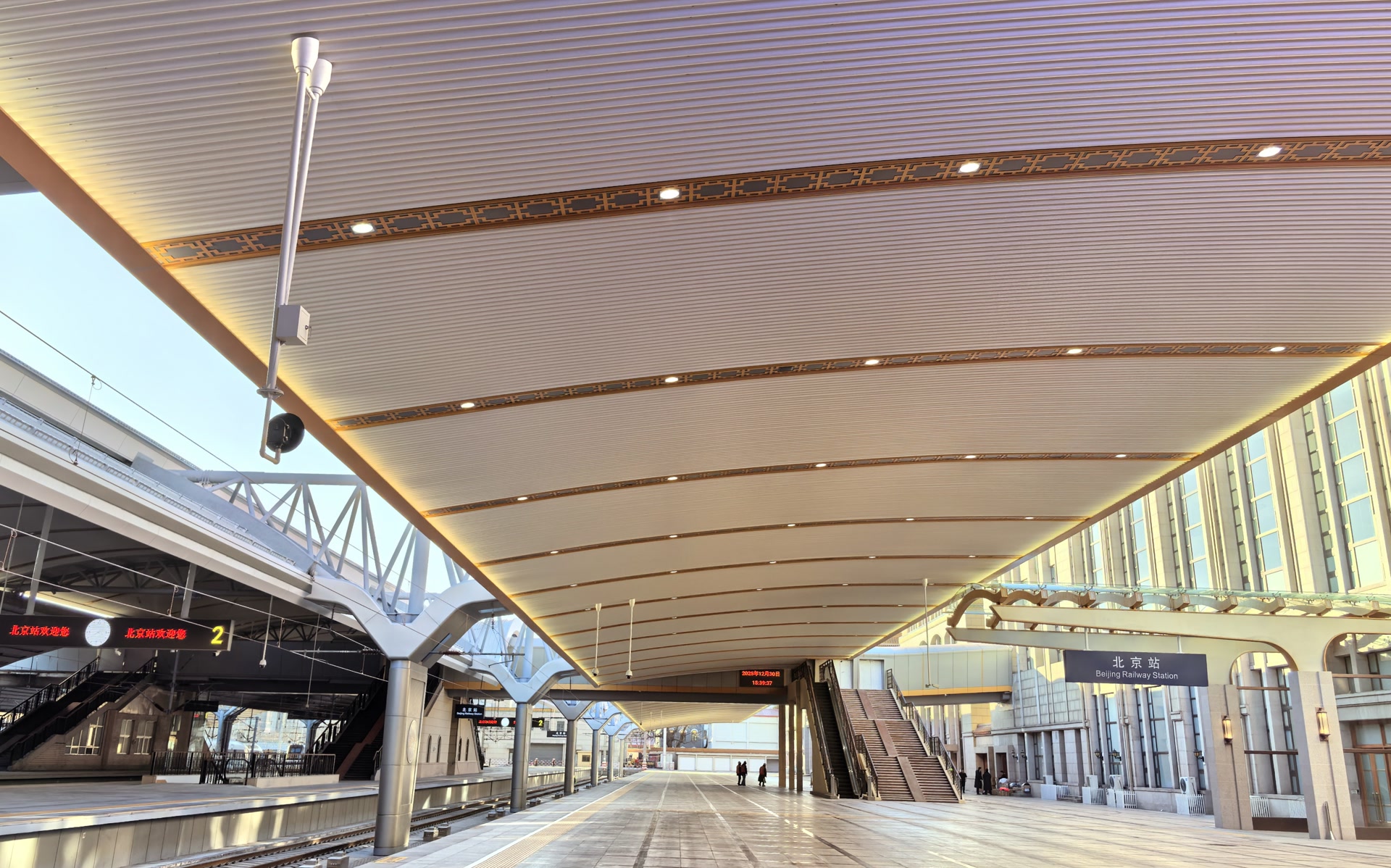 火车站的站台雨棚,夏天能防晒、雨天能遮雨。而北京站的站台雨棚,功能不止于此。