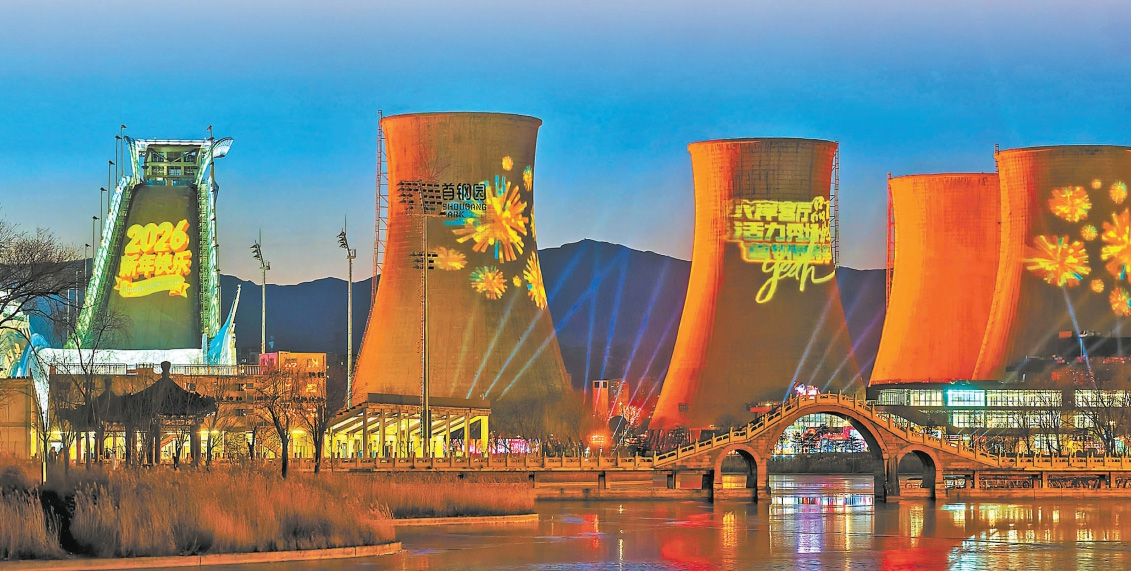 首钢园新年灯光秀 摄影/北京青年报记者 崔峻