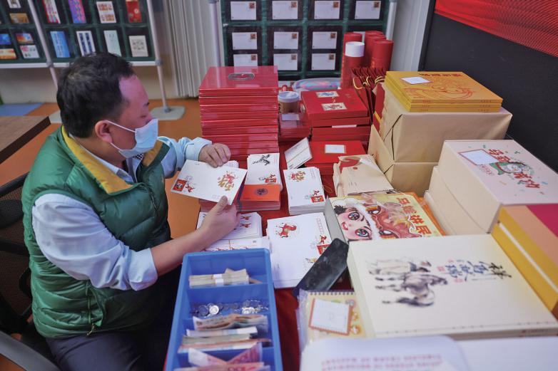 1月5日,朝阳区邮票公司营业部,工作人员清点邮品。