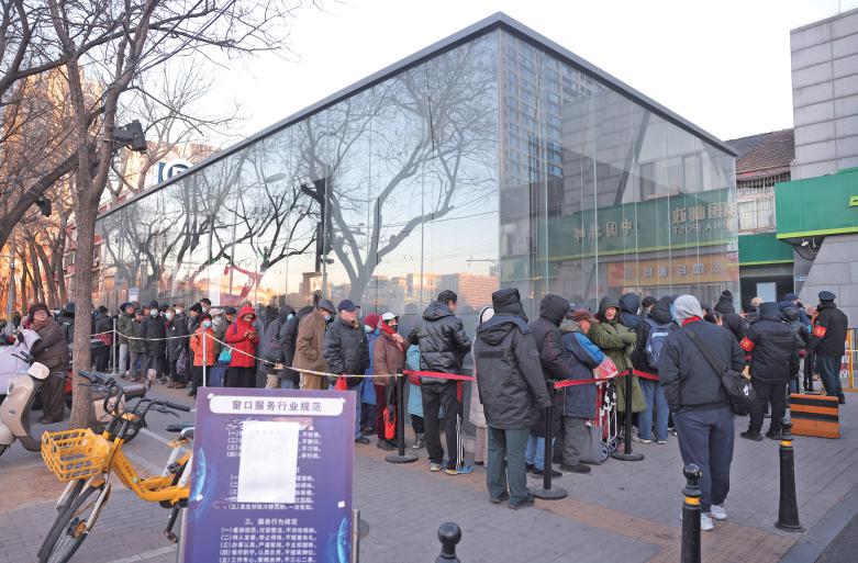 1月5日7时30分,集邮迷们在朝阳区邮票公司营业部门前等候。