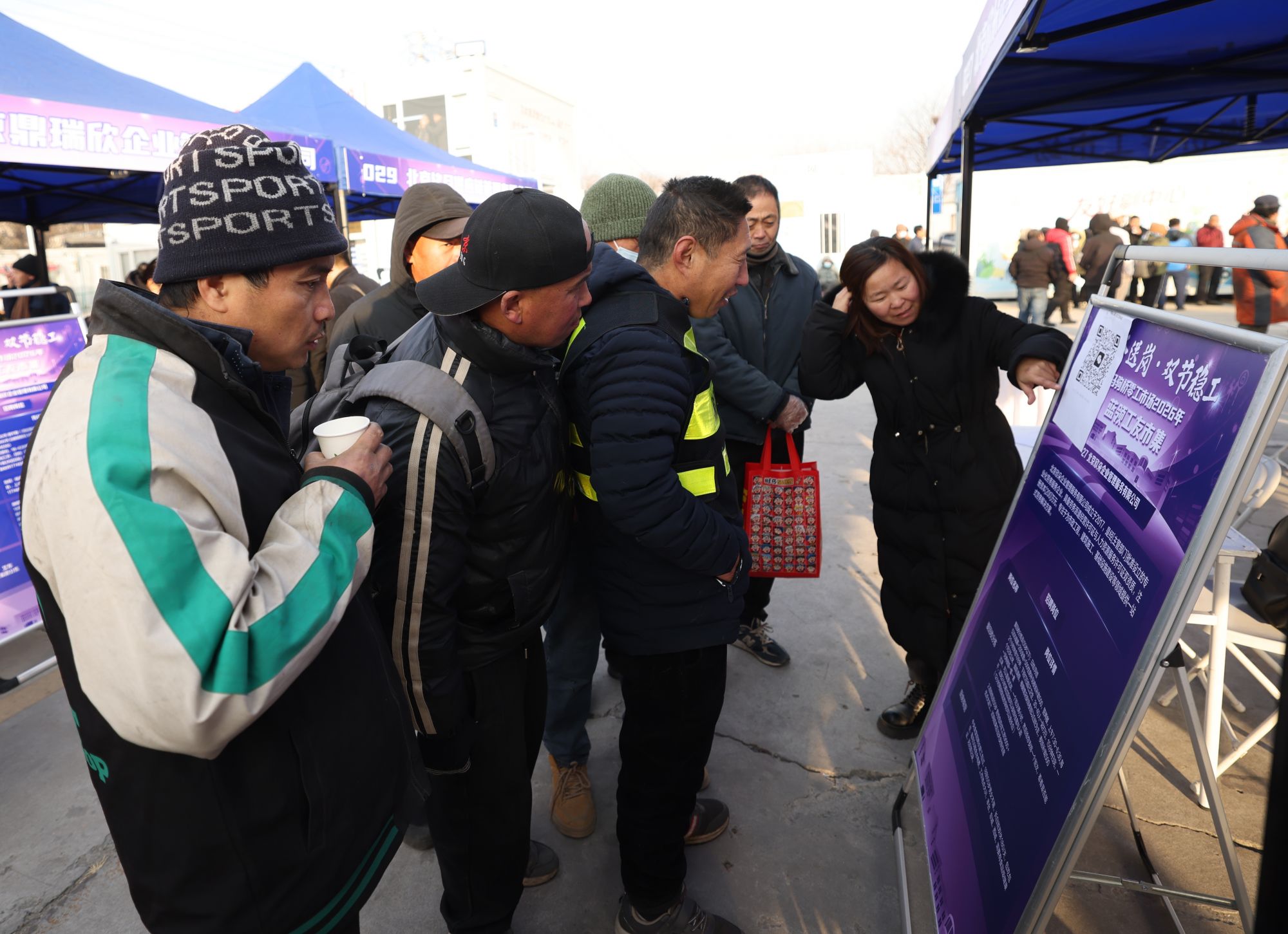 1月9日,北京市人力资源和社会保障局在马驹桥零工市场组织开展“暖冬送岗 双节稳工”专场招聘会。新京报记者 王贵彬 摄