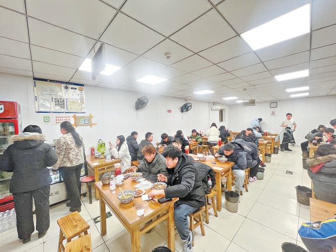 小店没有精致的装修,17张四人餐桌摆成三列,陌生人拼桌而坐在这里是常事。记者注意到,顾客中有刚下班的白领,也有行色匆忙的骑手。