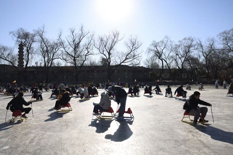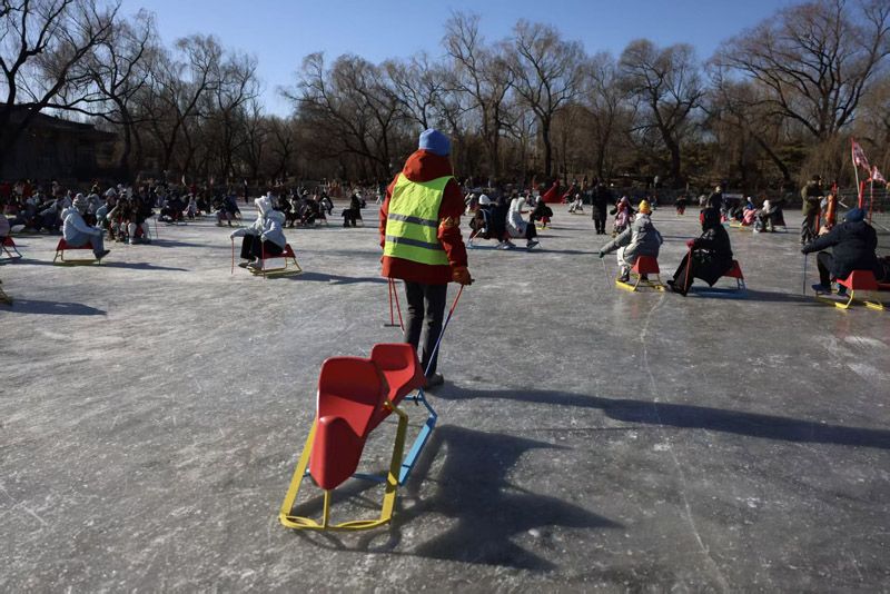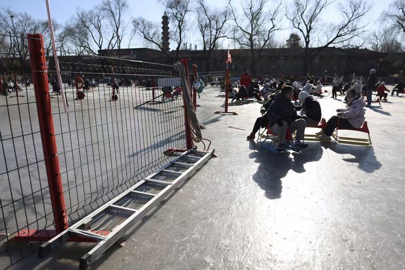 游客在冰场内玩耍。