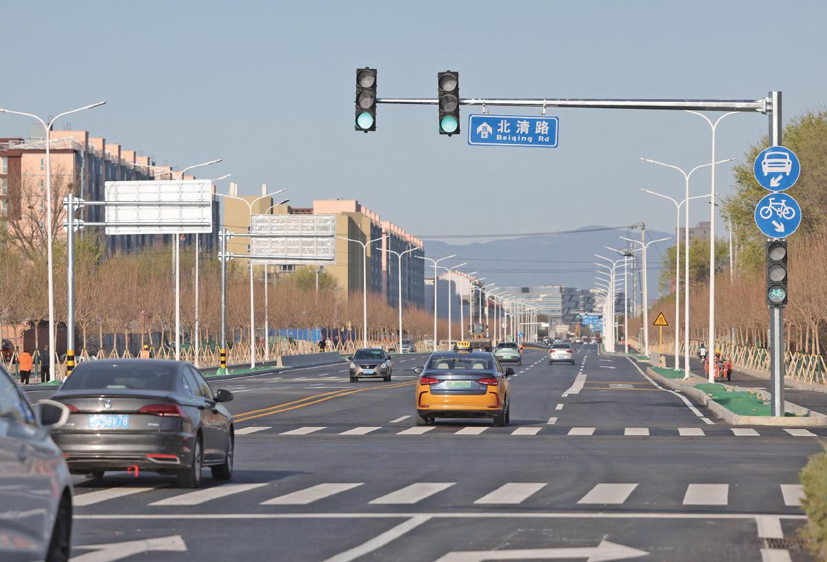 2025年4月2日,早高峰时段,贯通后的北清路车流顺畅。2025年回天地区治理成效凸显,太平庄中街等28个重点项目建成投用,北清路快速化改造一期竣工通车、平均通勤时间缩短50%以上。资料图片/新京报记者 王贵彬 摄