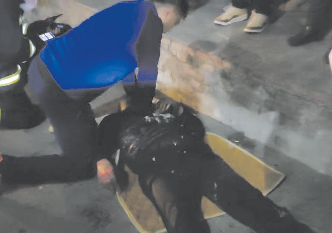“当时老人处于昏迷状态,身体有点僵硬,基本没有意识。”参与救援的消防员张英杰回忆道,看到老人的情况,他十分着急,立即跪地对其展开心肺复苏。