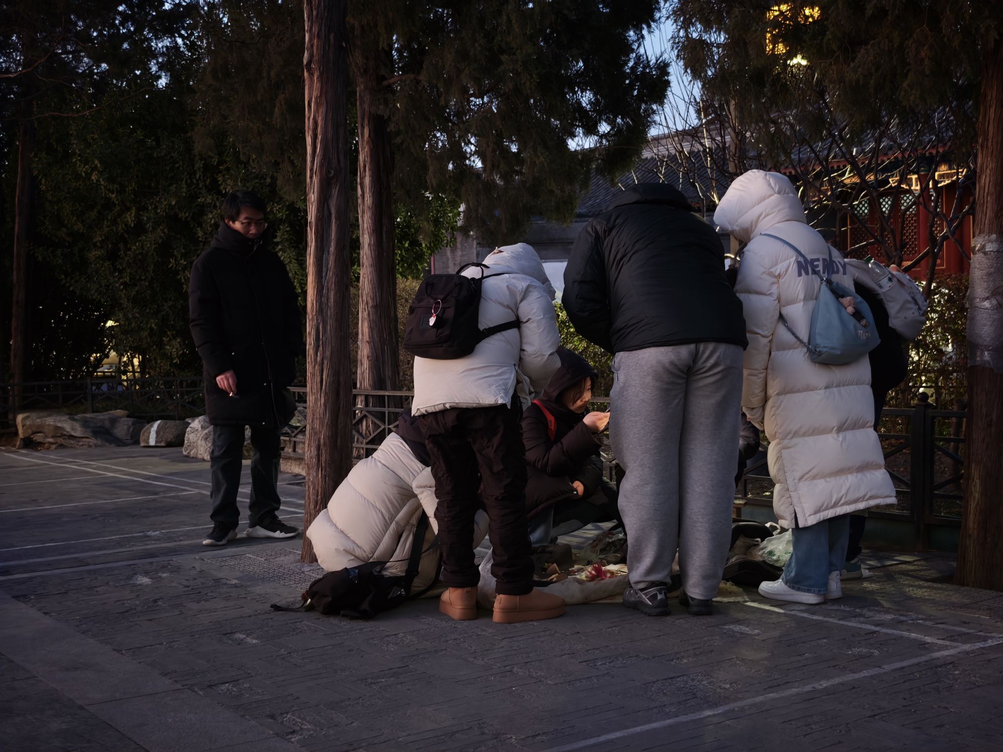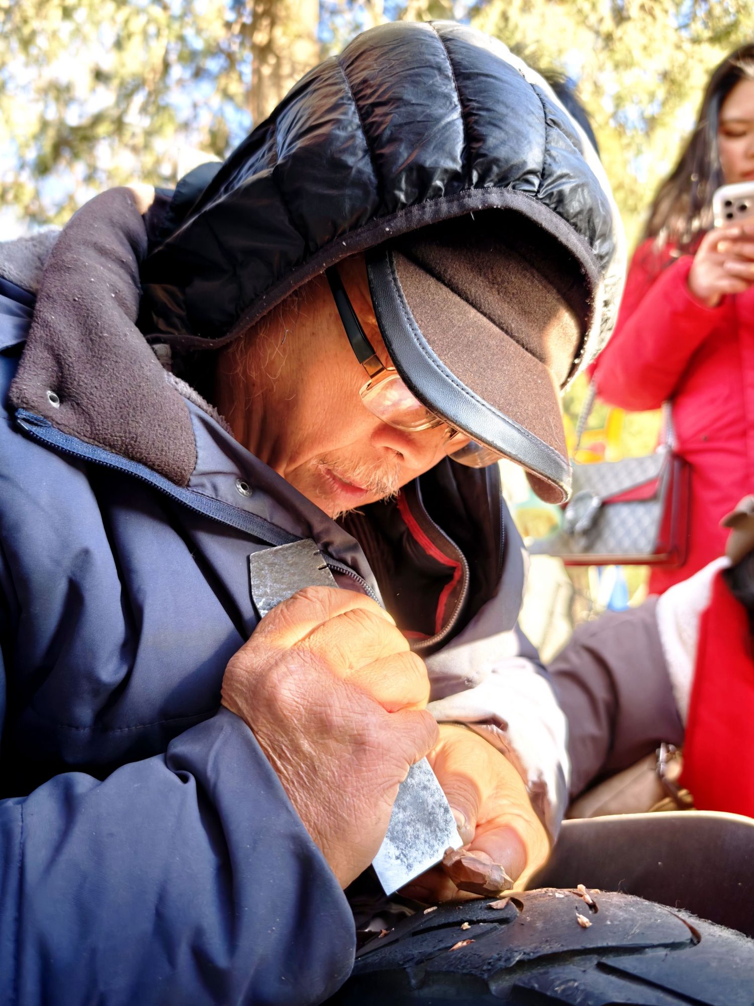 就在不久前,一位常年在什刹海边上摆摊卖手工木雕的老人,因为他“抽象”的作品,在社交平台忽然爆火。许多北京的年轻人,周末会到什刹海打卡、买一件“木雕大爷”的作品,也有人从外地赶来,早早来到什刹海边上,在冬日里等待他出摊。