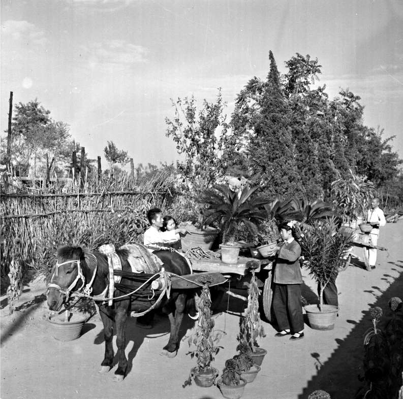 1959年,黄土岗公社社员将自己培育的花木送往城里。李晞摄