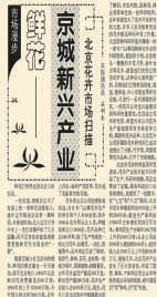 进入新世纪后,北京花卉业产值突破5亿元大关,成为本市重要产业。2001年,全市大中型花卉批发市场发展到20家,初步形成沿三环路的花卉交易流通圈。一区(县)一品的鲜花布局已形成:丰台的切花菊、朝阳的香石竹、海淀的彩色马蹄莲等逐步进入规模化、系列化。一批新兴的花卉产业基地蓬勃发展,如朝阳金盏花卉产业基地、通州新世纪园艺农场花卉基地等17家大型花卉生产基地初具规模。此外,花卉营销形式多样,从花卉进出口、贸易代理、大宗批发到超市连锁、花店专营、花卉租摆,几乎涵盖了所有传统营销模式,同时网上交易、拍卖、鲜花速递等现代交易手段非常活跃。(2002年1月7日《北京日报》1版,《京城四季花鲜艳》)