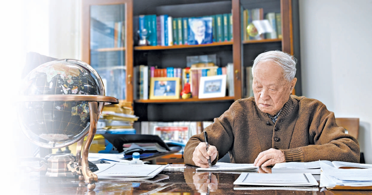 办公桌前的这位老人,满头银发,精神矍铄,很难想象他已届人生的鲐背之年。作为我国深部地球物理探测事业的开拓者、奠基人之一,91岁高龄的滕吉文仍坚持在研究岗位。