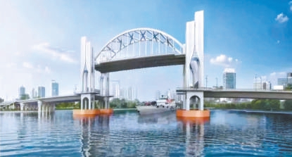 连接“于响”片区的安阳桥项目开挖深度达16米,采用双叶立转式开启设计,主跨跨径90米、桥面宽41.5米,是亚洲最大跨度的开启桥。桥梁东西向横跨海河,向东衔接于家堡,向西连接响螺湾。