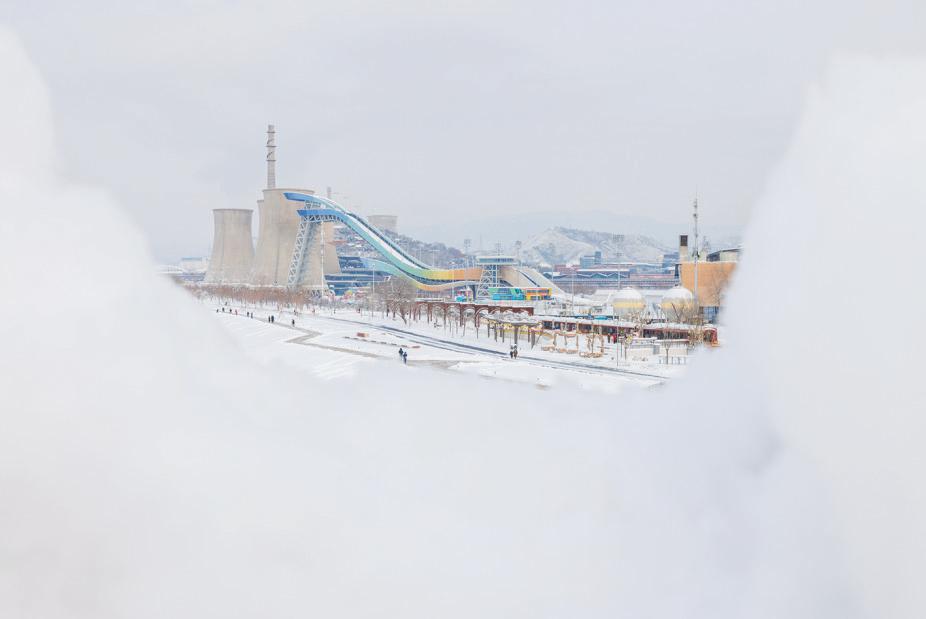1月18日,从新首钢大桥上眺望雪中首钢园。新京报记者 王子诚 摄