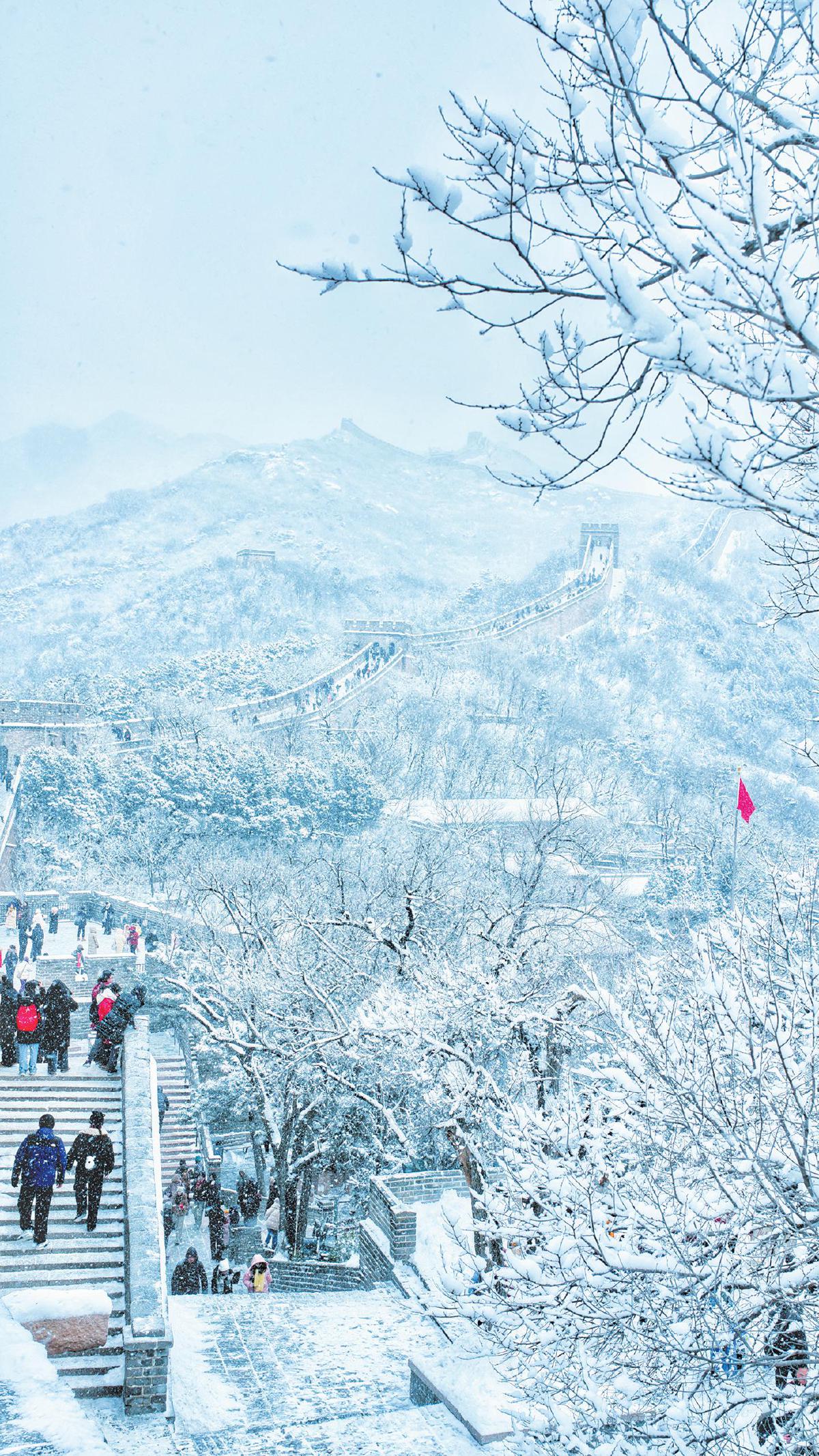 1月18日,游客游览雪中八达岭长城。新京报记者 陶冉 通讯员 李晓鹏 摄