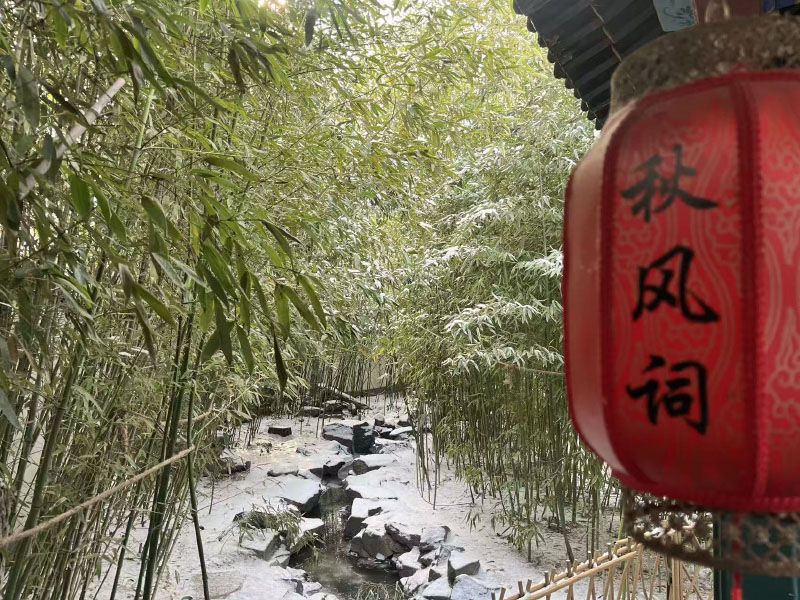 1月18日,北京大观园,潇湘馆的竹林覆着白雪,更显清幽雅致。