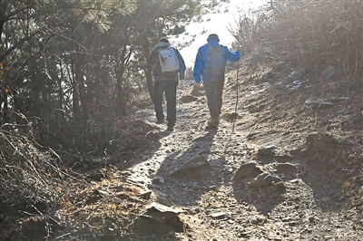 文史爱好者在山间寻访古迹 摄/本报记者 崔毅飞