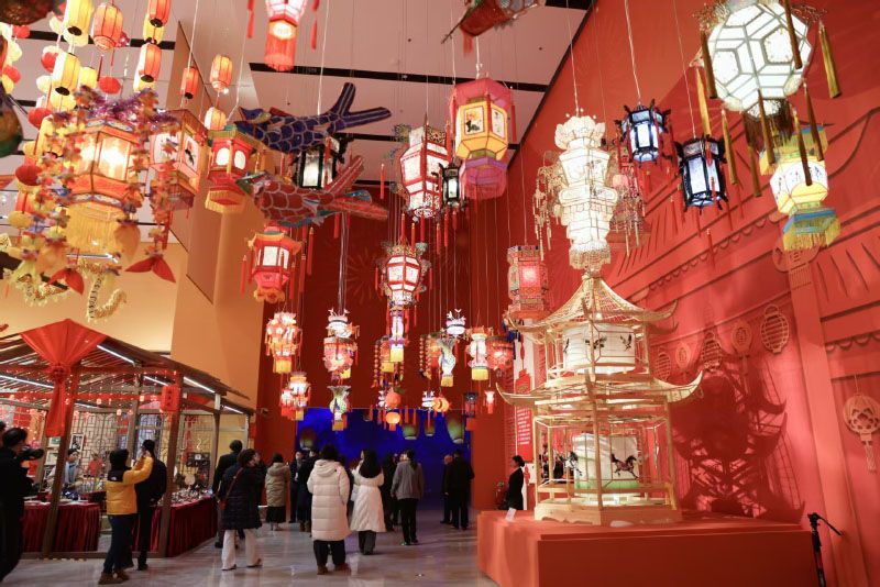 嘉宾参观节日主题非遗灯彩作品。