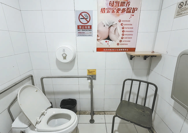 新中关购物中心的母婴室设在无障碍卫生间里。