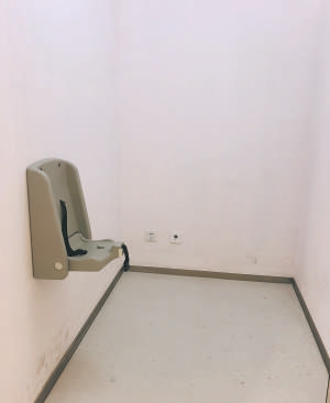 作为改造后焕新亮相的商圈,隆福寺南坊在多个楼层设有母婴室。记者随机选择一间,进入后发现左侧为洗手池,右侧则是两个小隔间。不过,隔间内除了壁挂式婴儿安全座椅和插座以外,没有配备其他可用设施。