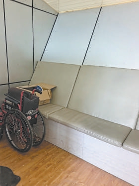 在海淀公园,游客服务站的小门上贴有母婴室的标识。记者尝试打开,发现门已上锁,找到保安帮忙开门后,看到左侧有一面屏风。“这里面没什么设施,只是有个地方能坐。”保安指了指屏风后说,“可以在这儿换尿不湿或者喂奶。”记者在现场看到,所谓的母婴室位于房间一角,里面只有一排又窄又脏的长椅,上面堆放着纸箱等杂物,旁边还有一把轮椅,让本就局促的空间更显拥挤。