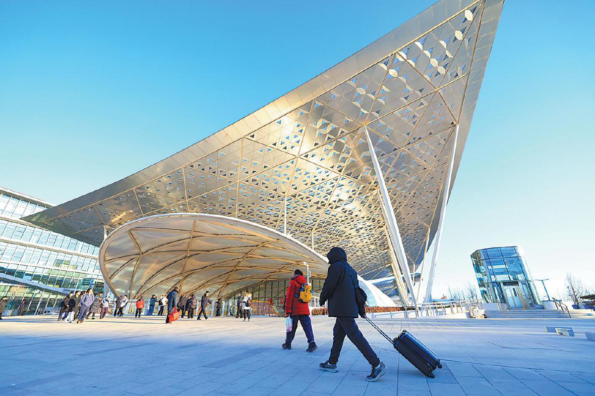 2025年12月30日,旅客进入北京通州站。摄影/新京报记者 王贵彬