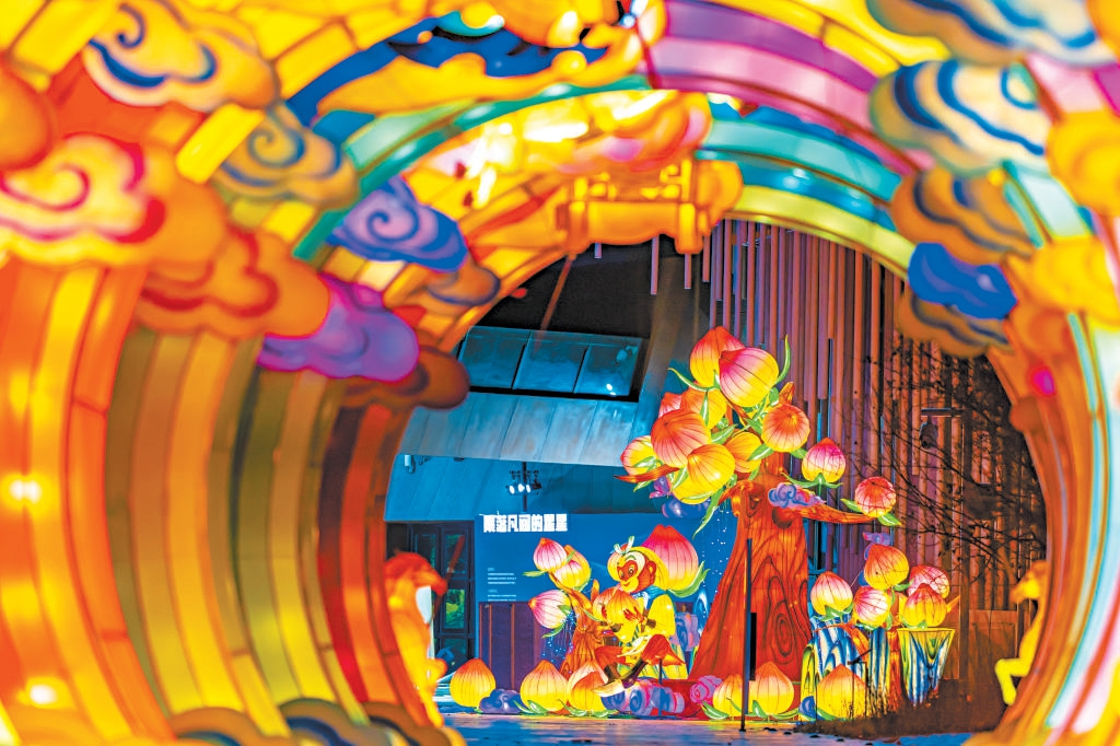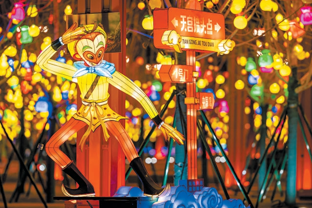 本届灯会以经典动画《大闹天宫》为主题,将国潮动画与国家级非遗自贡花灯巧妙融合。