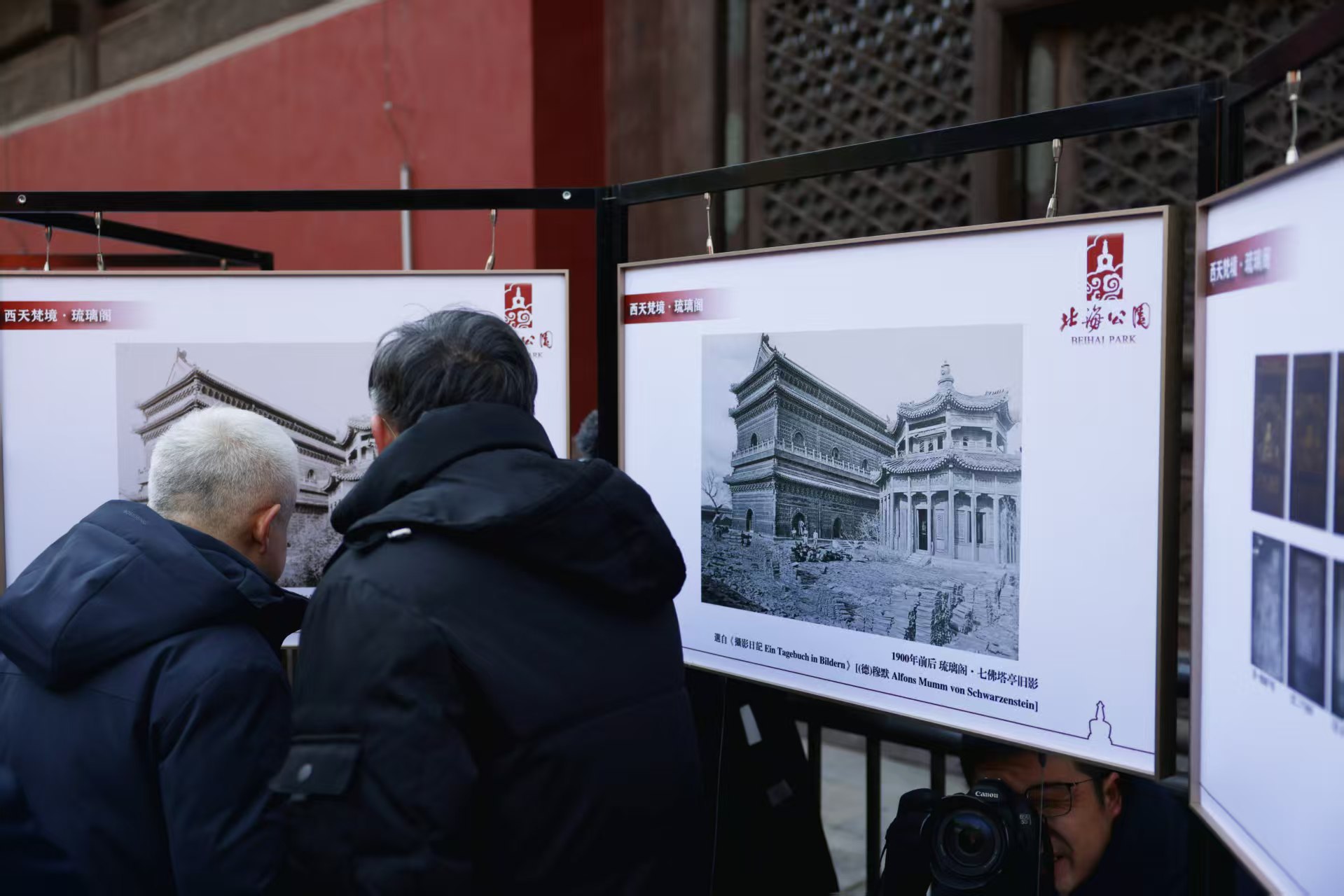 嘉宾在观看琉璃阁院落老照片。新京报记者 浦峰 摄