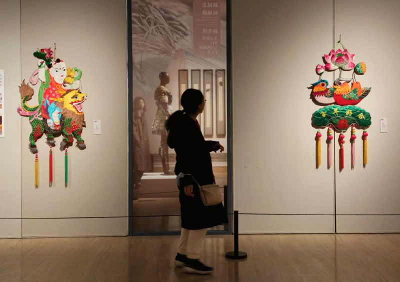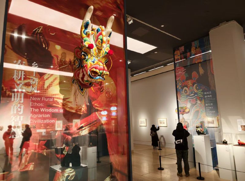 1月22日,“新民艺、新风尚、新生活——文艺赋美乡村与当代民间手工艺”展在中国美术馆开幕,本次展览旨在通过来自全国近三十个具有代表性的实践案例,集中呈现当代民间手工艺在“文艺赋美乡村”进程中的生动贡献与多元路径。图为重庆铜梁的彩扎龙头。重庆铜梁龙舞与扎龙技艺源于隋唐,如今龙舞每年演出超千场、产值近5亿,并培养6万青少年传承人,成为乡村振兴的活态文化资产。