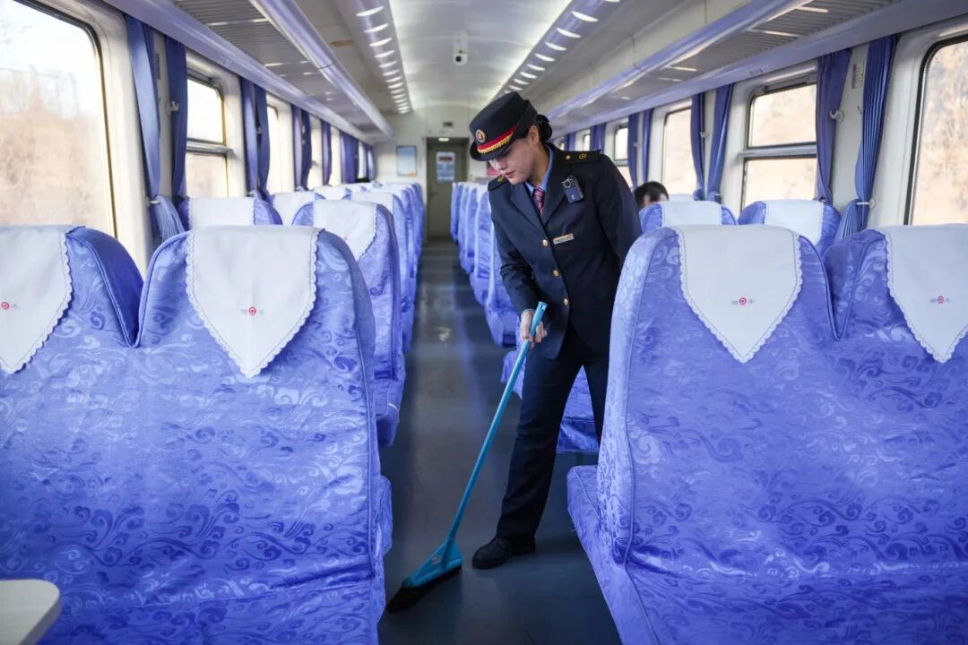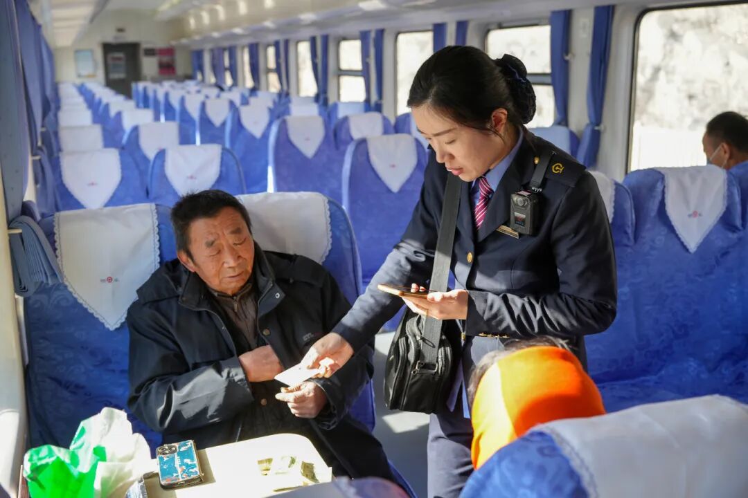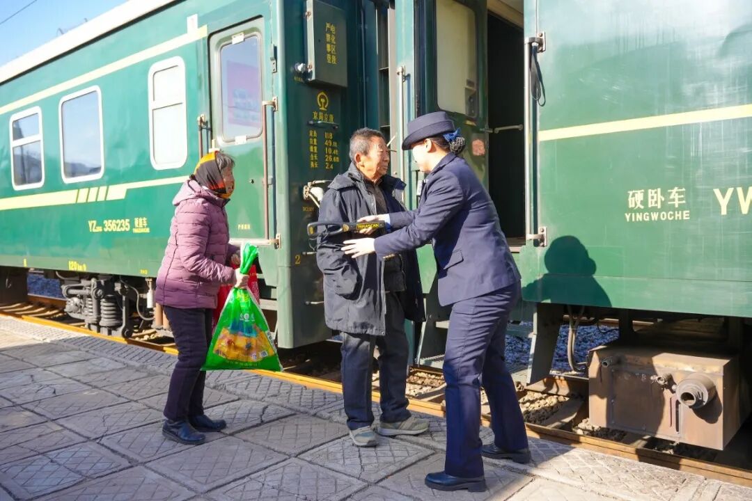 “我就在铁路边住,每周都坐这趟车,乘务员都面熟,就是叫不上名字。”郭大娘笑呵呵地说。同行的还有76岁的郭大爷:“这趟火车坐了大半辈子,如今环境好了,可我还记得从前列车员多辛苦——人多,地老是扫不完。”