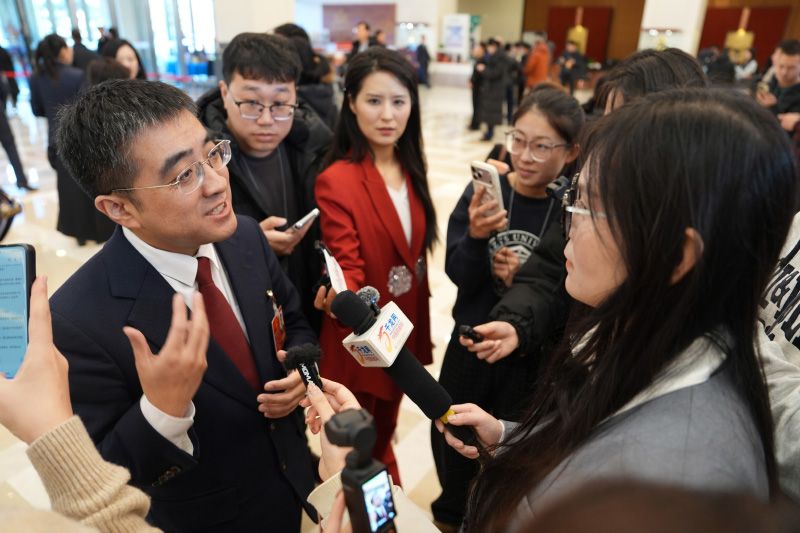 市人大代表,九一先智科技集团有限公司董事长、首席执行官许泽玮接受记者采访。