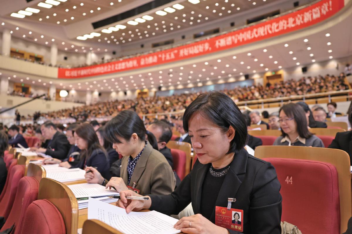 1月25日上午,北京市十六届人大四次会议在北京会议中心隆重开幕。代表们认真听取政府工作报告。 新京报记者 王飞 摄