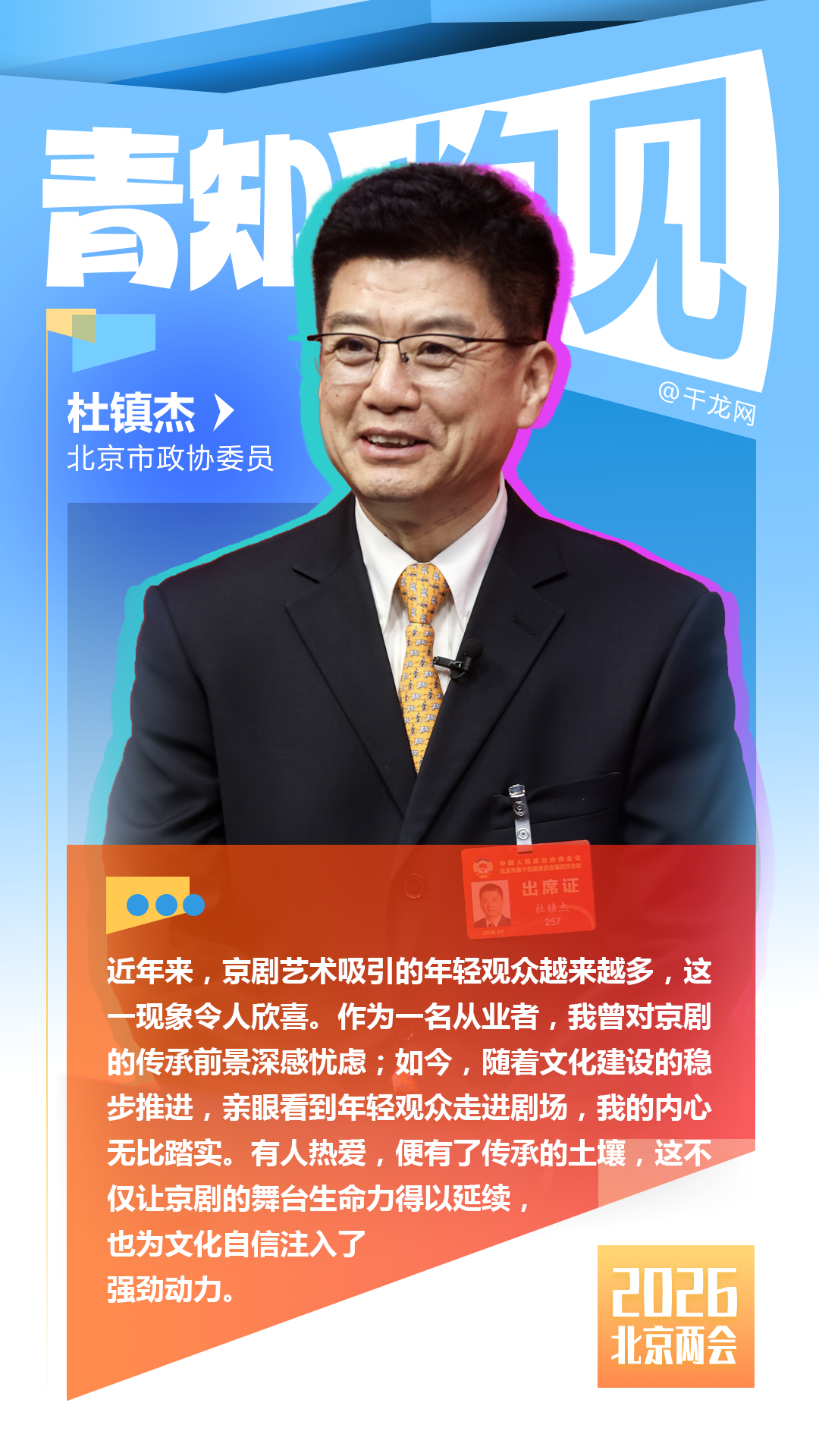 青知灼见 | 北京市政协委员杜镇杰:文化建设稳步推进 京剧舞台生命力延续