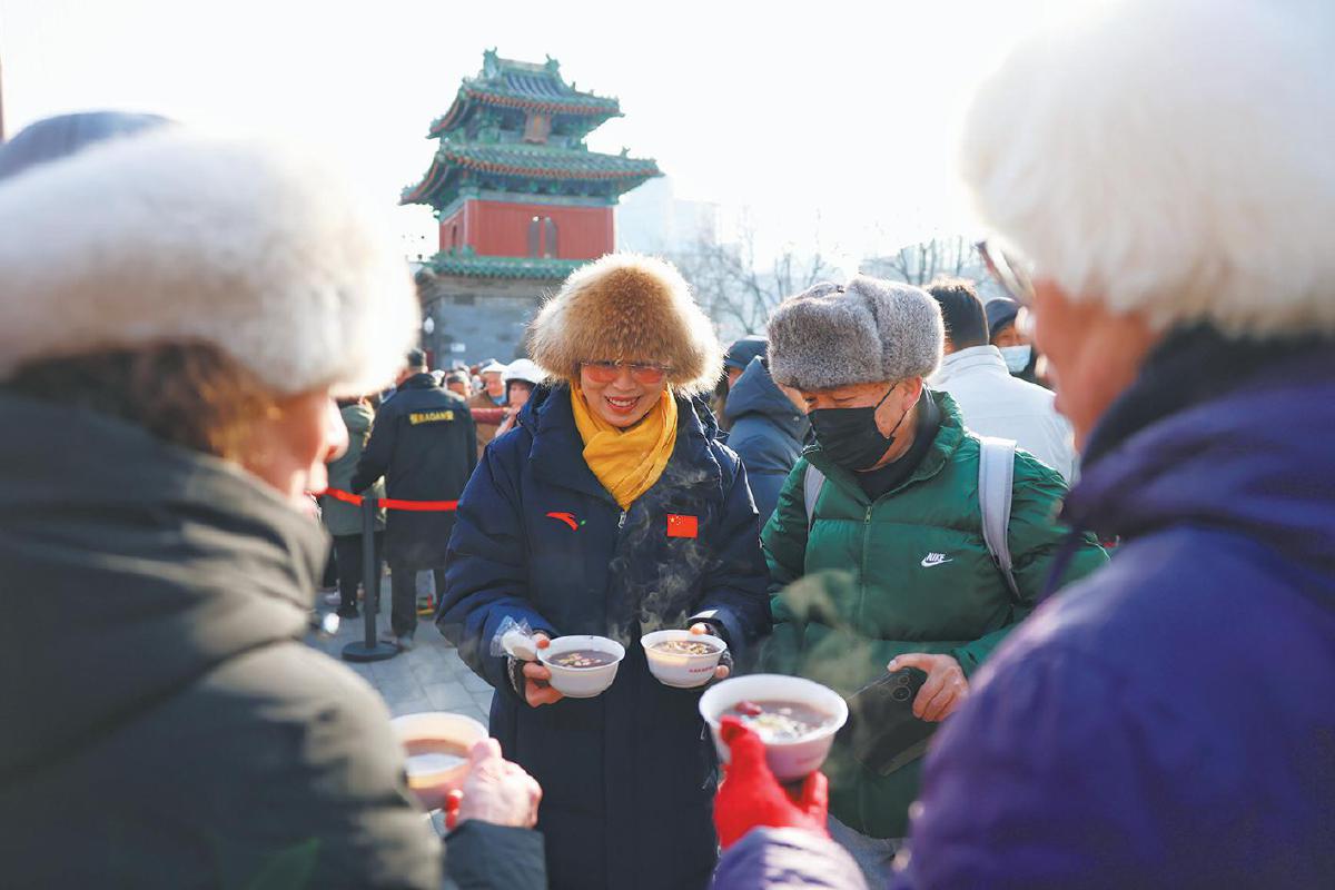 场景:市民领到热气腾腾的腊八粥。新京报记者 浦峰 摄