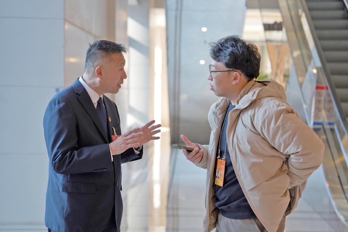 1月24日,北京会议中心,王建生(左)接受新京报记者采访。 新京报记者 陶冉 摄