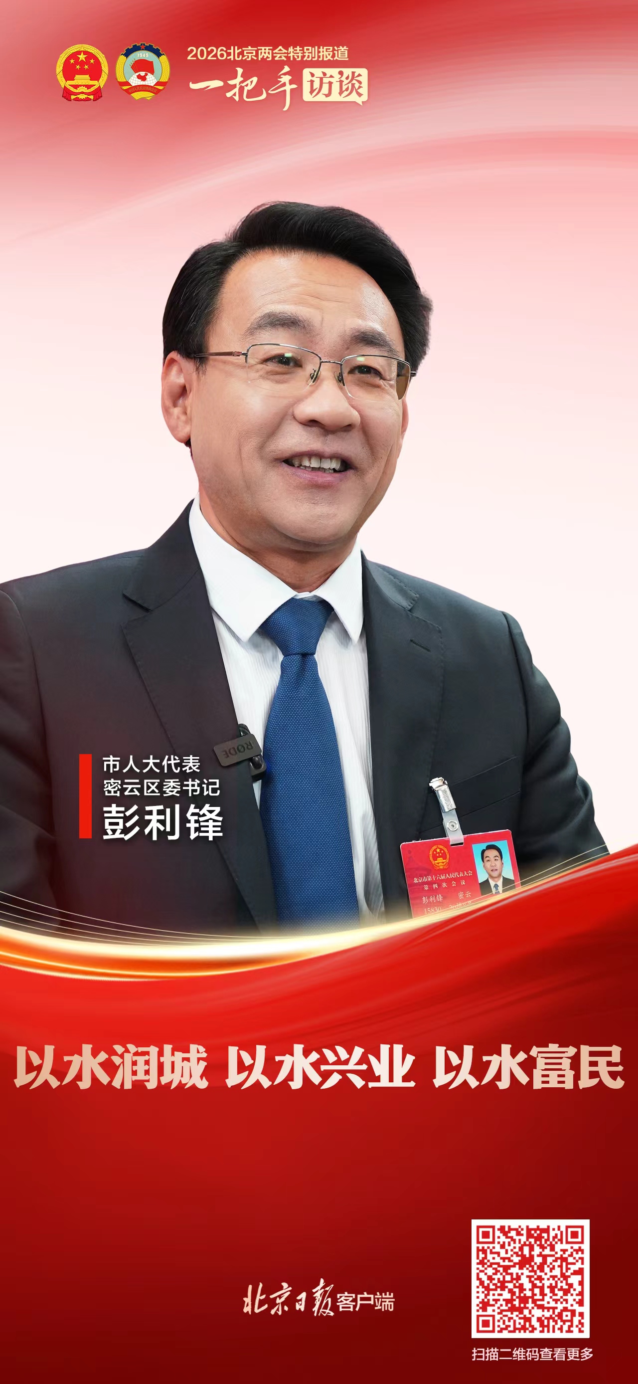 2026年北京市两会期间,市人大代表、密云区委书记彭利锋做客“一把手访谈”栏目,围绕密云区“十五五”如何开好局、起好步进行介绍。