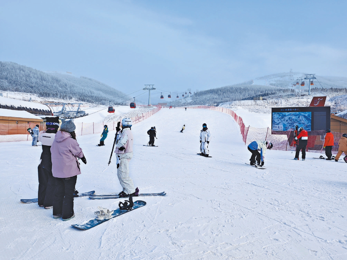 雪如意滑雪场人头攒动、缆车穿梭,人们尽享滑雪乐趣。