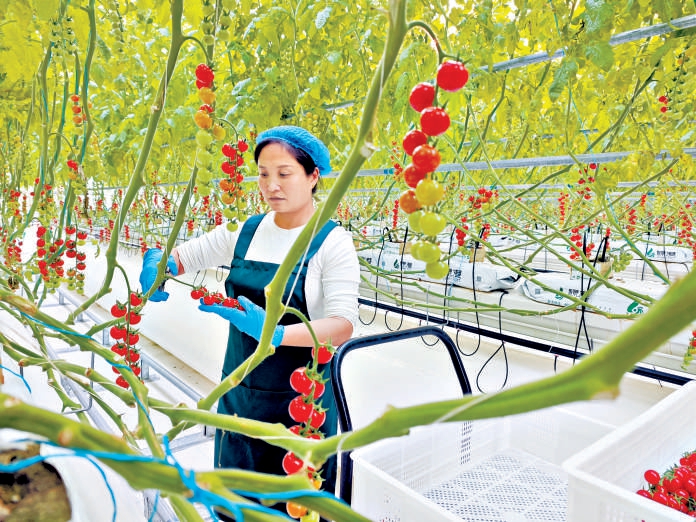 在雄安智慧农业科技园内,工作人员正在采摘西红柿。本报记者 李如意摄