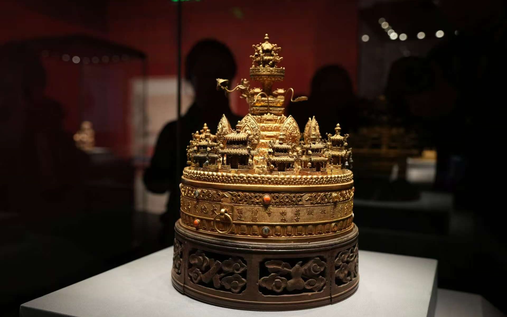 展出的清代铜鎏金须弥山坛城。新京报记者 浦峰 摄