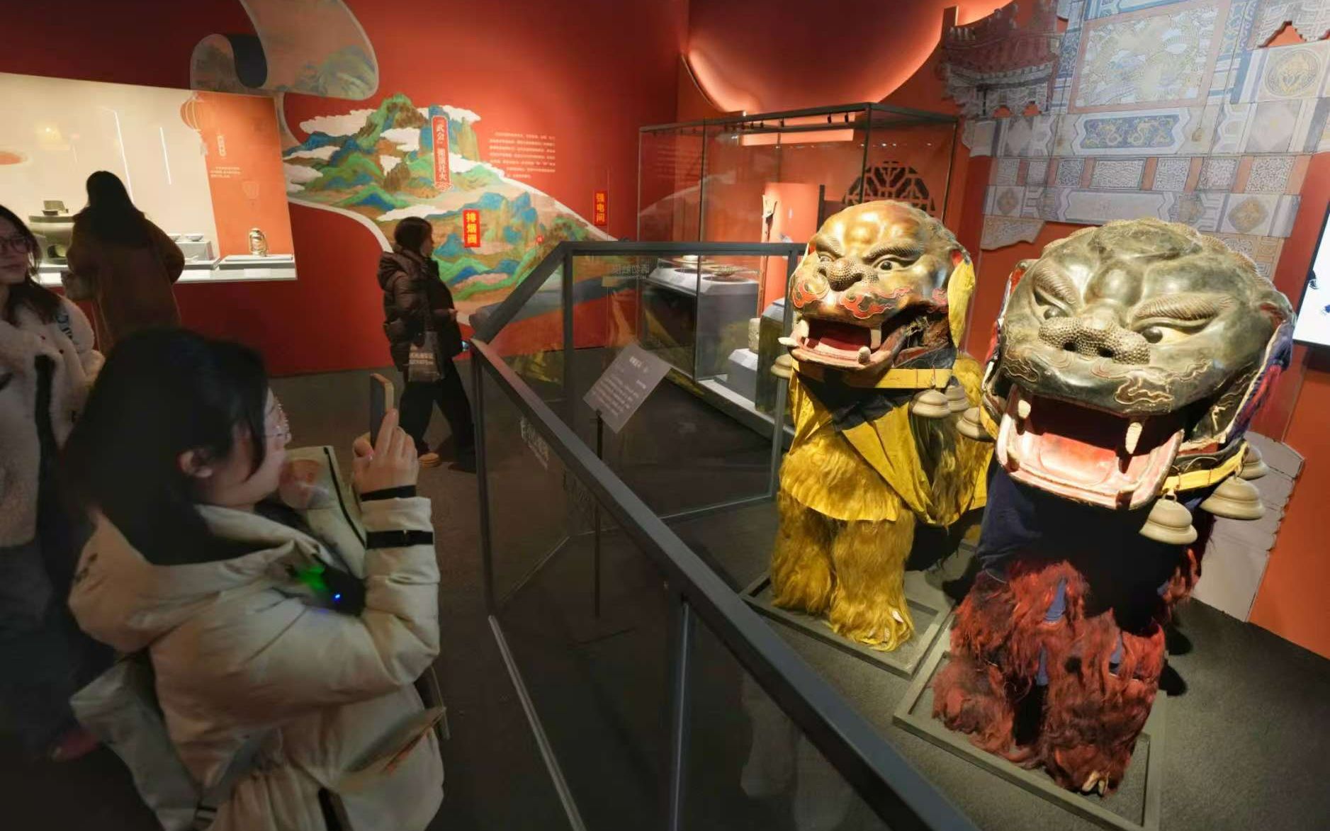 观众在参观清代舞狮道具。新京报记者 浦峰 摄