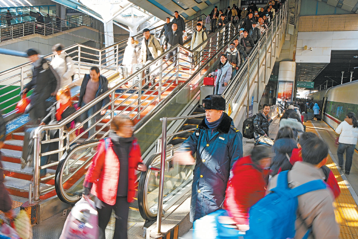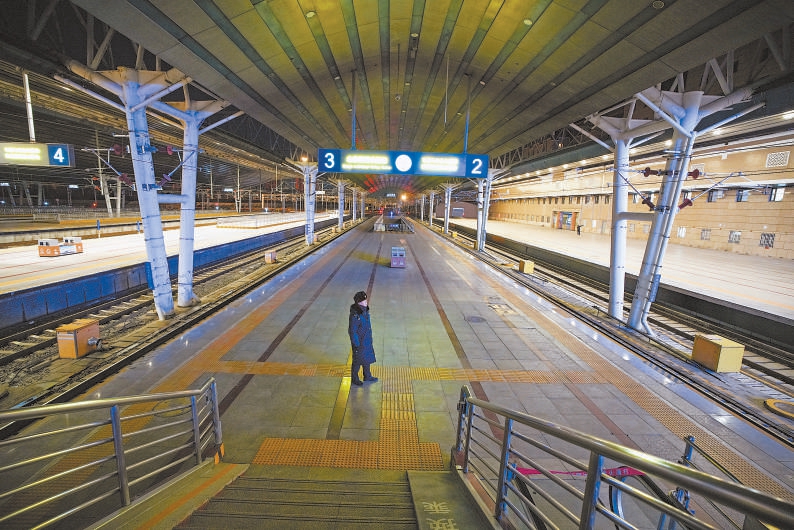 2月3日上午10点6分,从成都出发的D50次列车稳稳停靠在北京西站,车站的2站台一下子热闹了起来。客运值班员朱春生穿着整齐的铁路制服,耐心维持着出站秩序。“大家不要着急,带小孩的把孩子领好,注意脚下安全……”声音直抵涌动的人潮,铿锵有力。