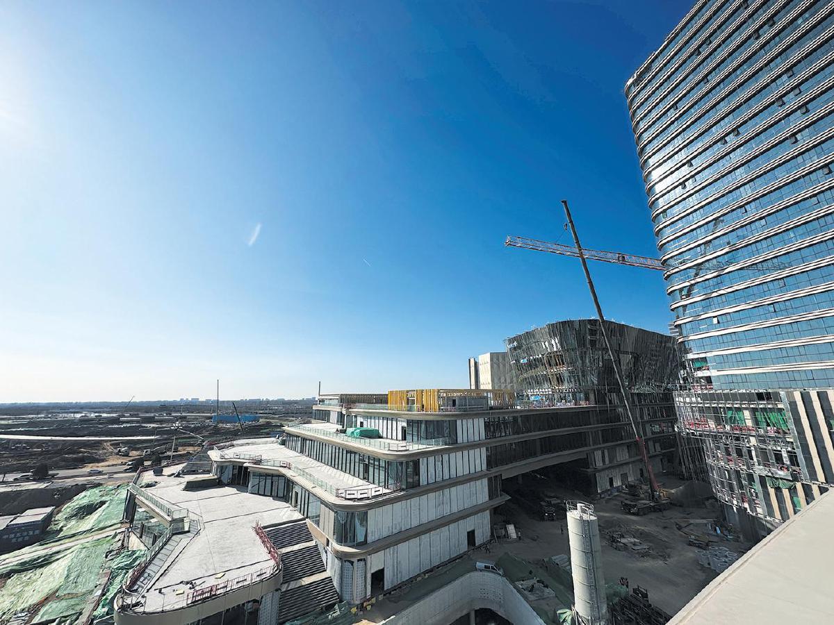 正在建设中的雄安国贸中心,京雄快线雄安航站楼站坐落于此。 新京报记者 孙海光 摄
