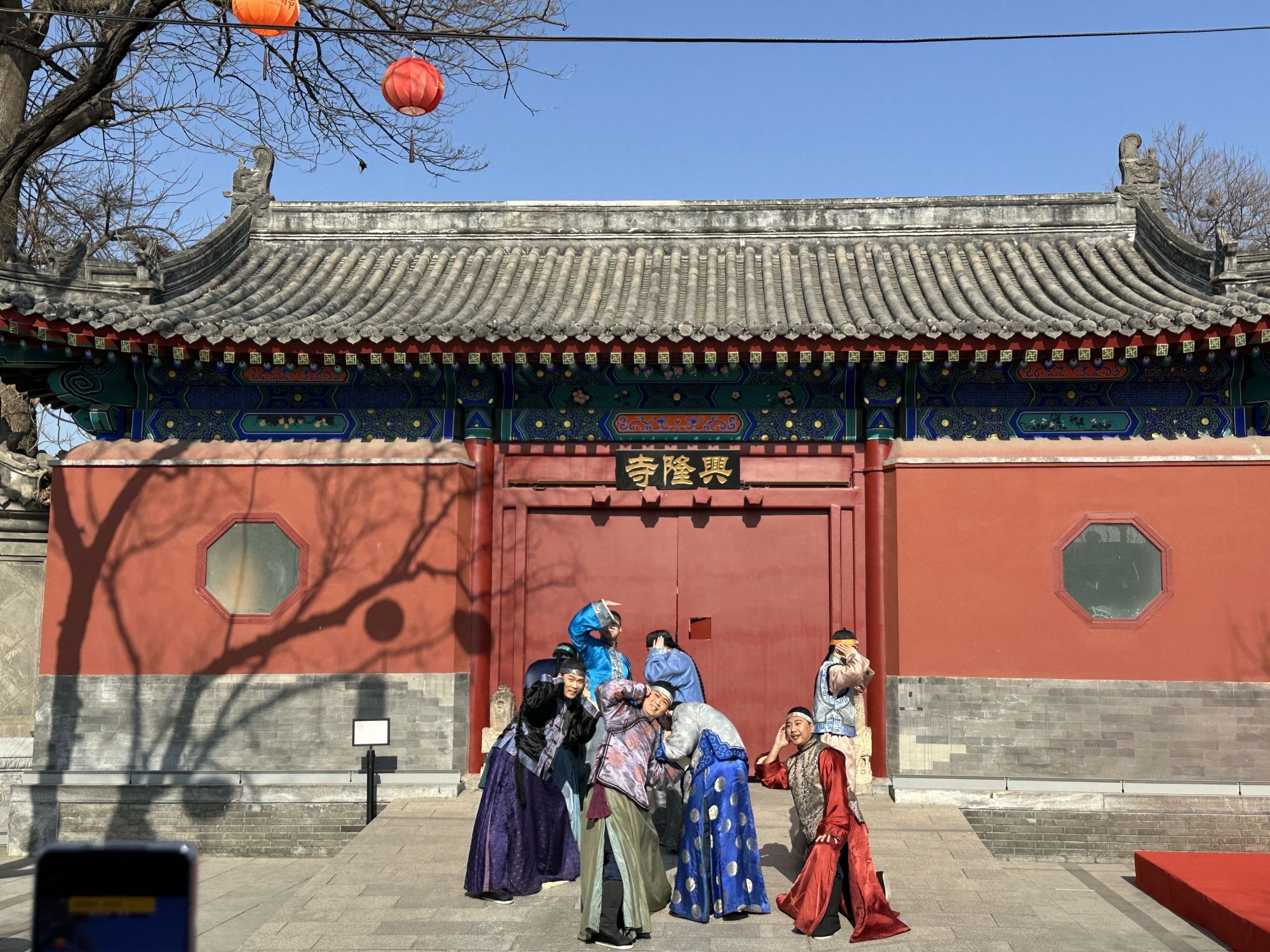 虽然离春节还有几天,宛平城内已张灯结彩,年味扑面而来。在兴隆寺大门外,北京市曲剧团演员们正在表演经典剧目《正红旗下》的“过年”选段。北京市曲剧团二级演员胡优介绍,这是全剧最热闹的选段,把老北京过小年、闹新春风俗风情都展现出来,春节期间每天都会上演。