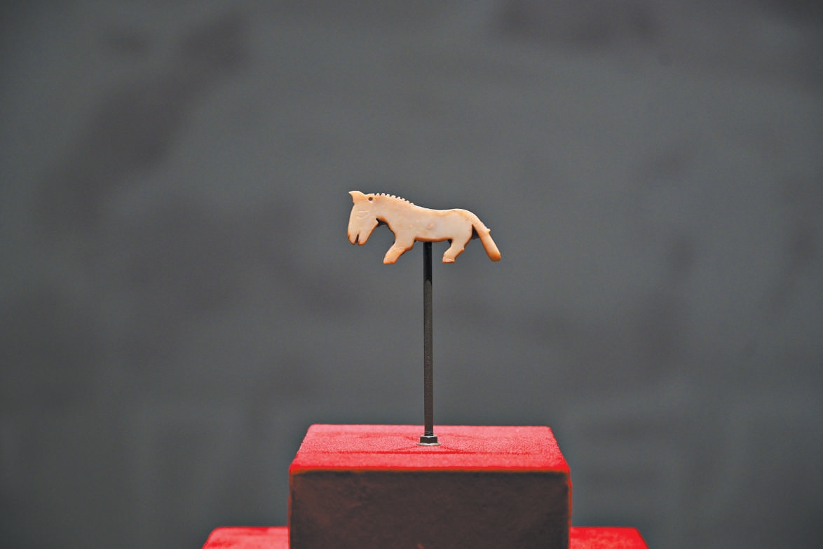 河南安阳殷墟妇好墓出土的玉马。 北京日报记者 金瑶摄