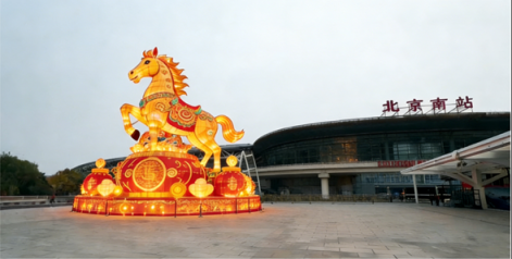 位于北京南站的马年装置景观。(受访者供图)