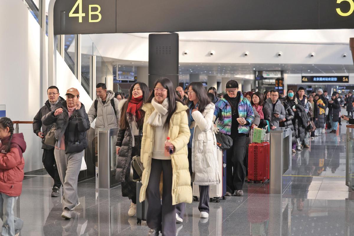 “这就进站了?好像没有明显的‘门’呀,新车站就是不一样。”几位拖着行李箱的旅客停下脚步,好奇地打量着这座车站,并用手机拍个不停。让他们惊讶的是,这座车站仿佛与城市肌理自然相连,没有冰冷的界限。正在“成长”中的北京通州站,就这样“松弛”地迎来了它的第一次春运。